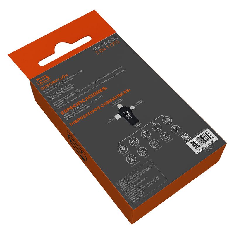 El adaptador Urban Balance USB OTG 3 en 1 es la solución versátil para conectar memorias, teclados, mouse y otros accesorios a tus dispositivos móviles y tablets de forma rápida y práctica.