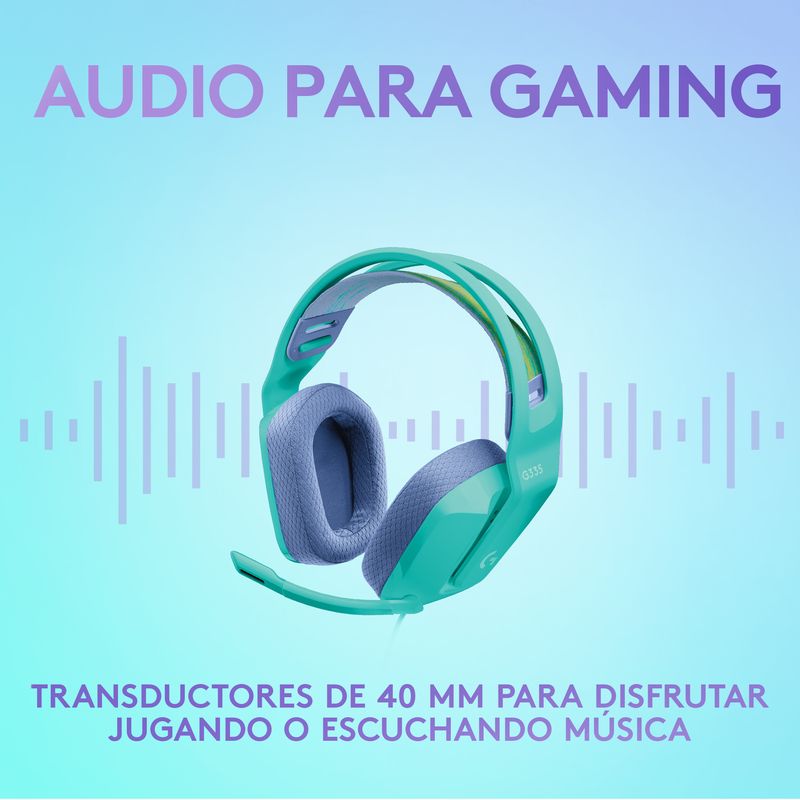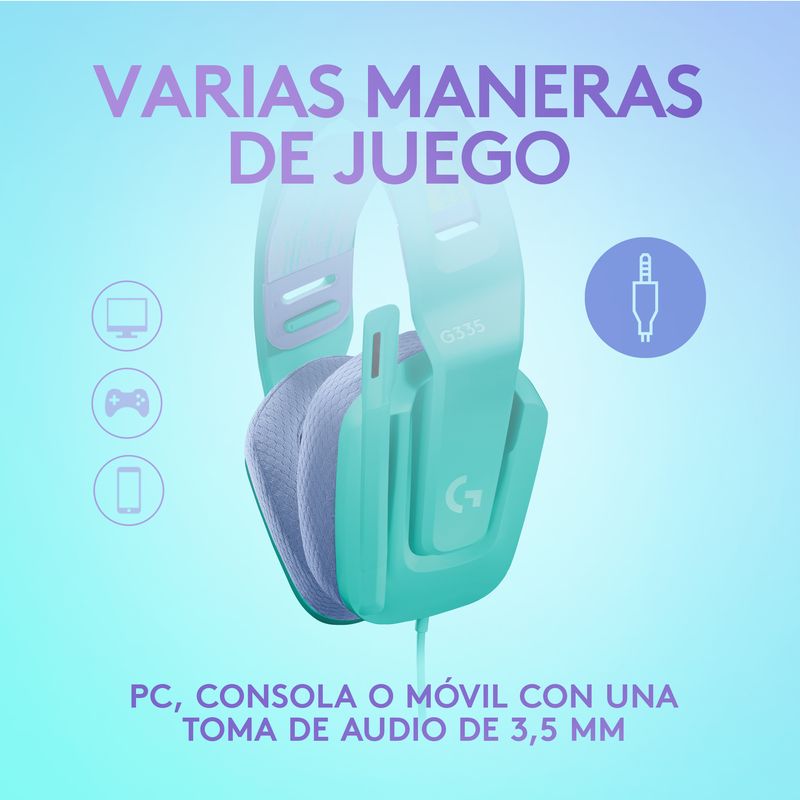 Con su moderno color menta y estilo distintivo, los Logitech G335 combinan rendimiento, diseño y frescura. Perfectos para gamers que buscan un headset con gran sonido, estética y comodidad sin compromisos.