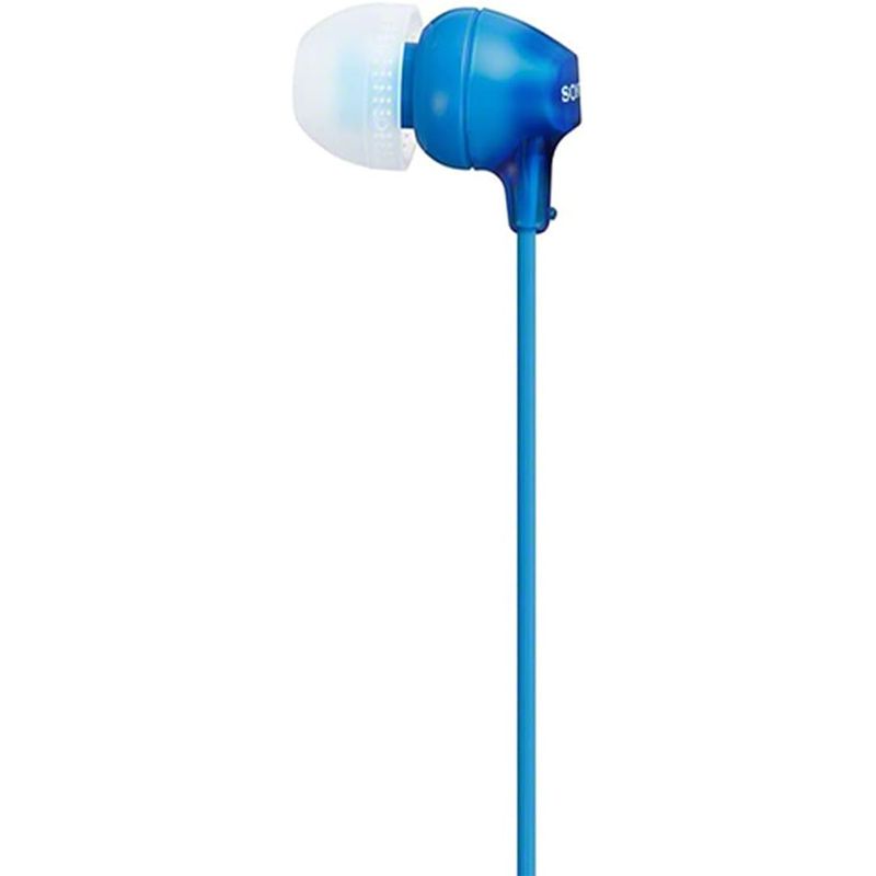 Los audífonos in ear Sony MDR-EX14APL en color azul ofrecen un diseño ergonómico y ligero que se adapta cómodamente al oído, brindando un sonido nítido y envolvente en todo momento.
