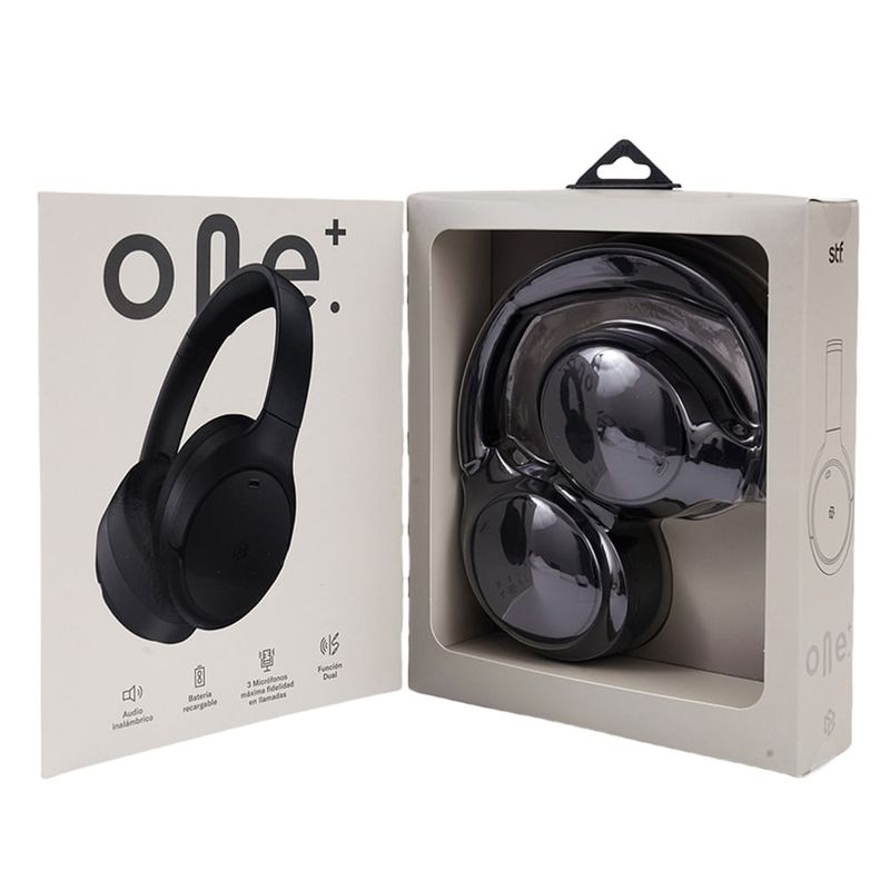 Los audífonos STF One Plus ofrecen sonido nítido y potente con cancelación activa de ruido, ideales para disfrutar de música y llamadas sin interrupciones. Su diseño negro combina estilo y comodidad para uso prolongado.