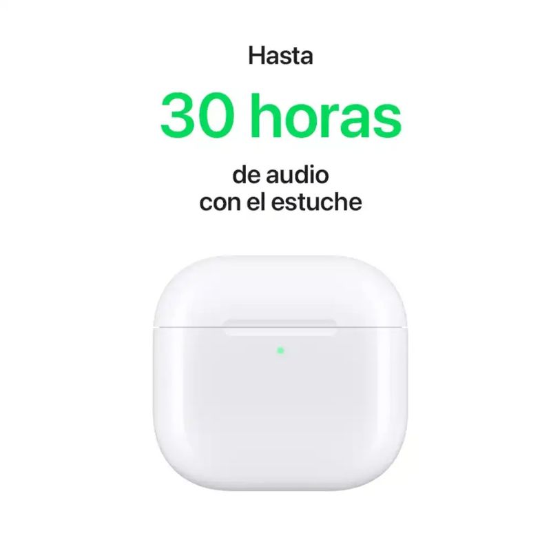 Con certificación IP54, son resistentes al agua y al polvo, perfectos para uso diario y actividades al aire libre. Su estuche de carga MagSafe brinda hasta 30 horas de autonomía para acompañarte todo el día.