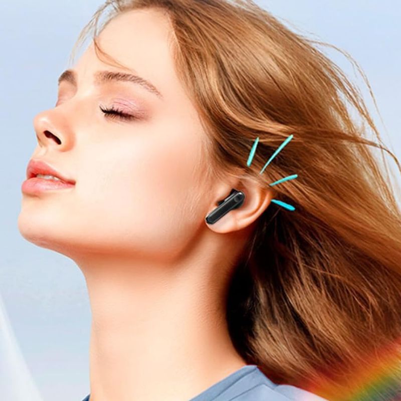 Conectividad avanzada y control intuitivo: Equipados con Bluetooth 5.3, estos audífonos TWS ofrecen una señal eficiente y emparejamiento rápido. Controla tu música o llamadas mediante un solo toque, con respuesta inmediata y sin necesidad de usar el celular. Además, su micrófono incorporado permite realizar videollamadas o atender llamadas en movimiento con nitidez.