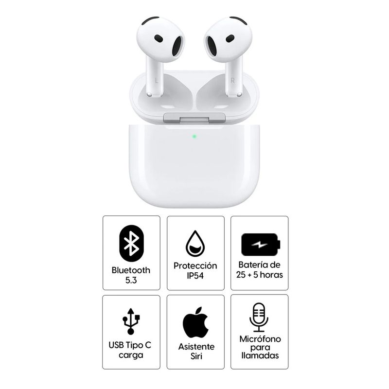 Los AirPods (4ta Gen) ofrecen una experiencia auditiva avanzada con un sonido más nítido, bajos potentes y conectividad perfecta. Su diseño ergonómico y ligero garantiza comodidad durante todo el día, ideal para música, llamadas o entretenimiento.