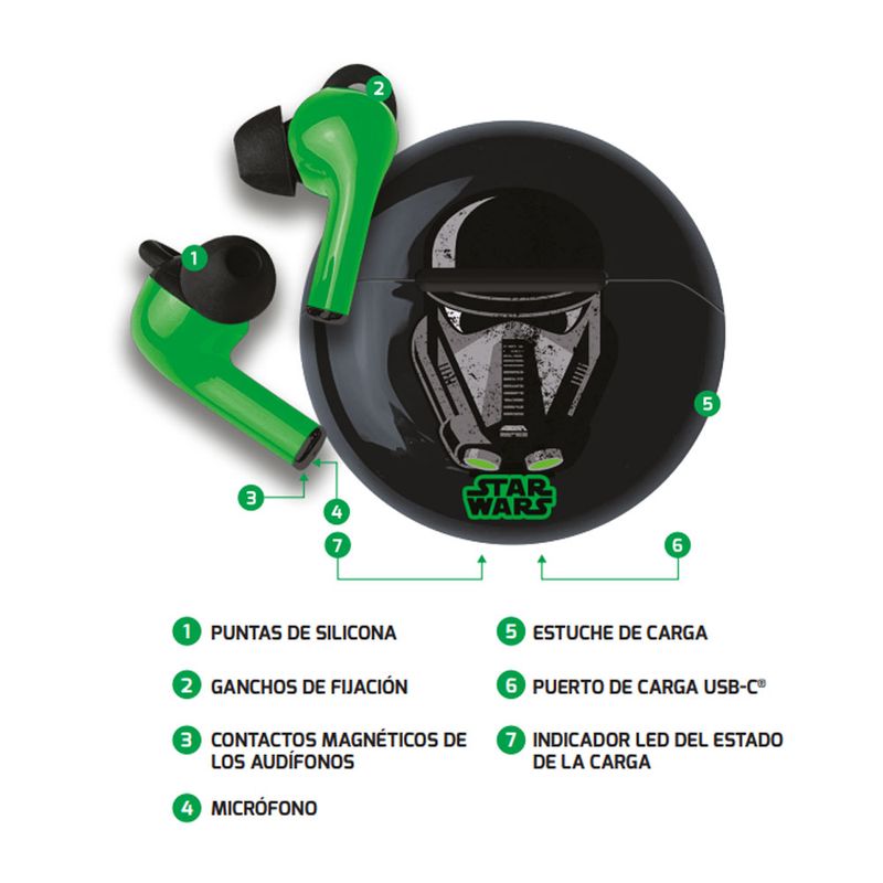 Los audífonos bluetooth True Wireless Primus ARCUS240 edición DeathTrooper ofrecen un diseño inspirado en Star Wars con un estilo único en verde y negro. Perfectos para quienes buscan sonido de calidad con un look exclusivo.