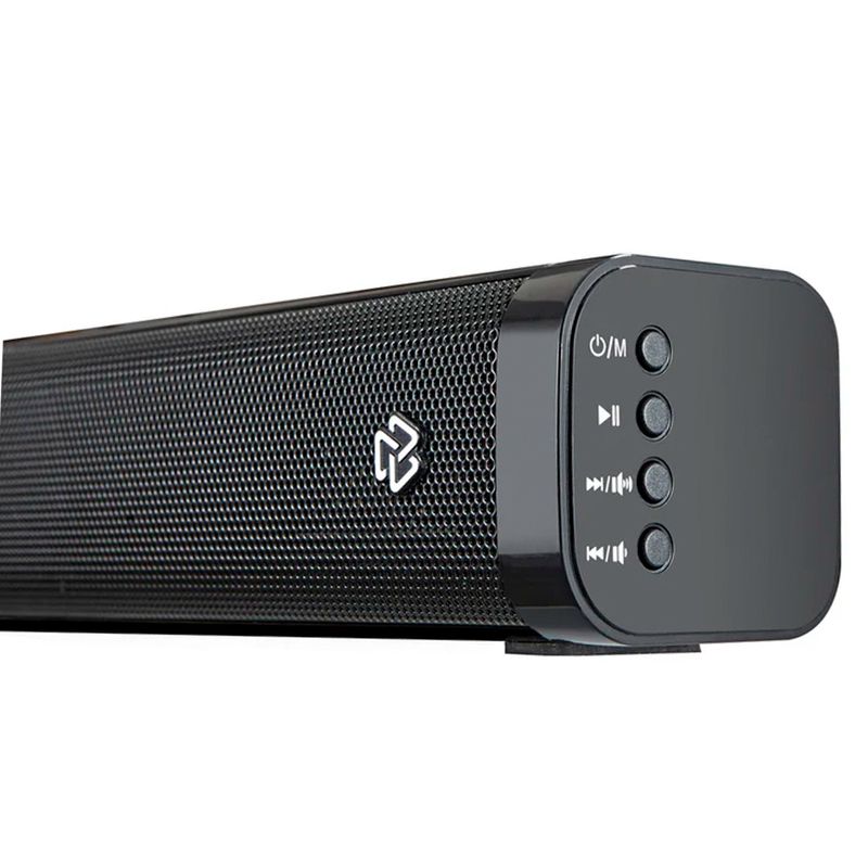 Este modelo cuenta con conectividad bluetooth, lo que permite reproducir música de forma inalámbrica desde smartphones, tablets u otros dispositivos compatibles. Además, incorpora entrada HDMI, facilitando una conexión directa y estable con televisores para una mejor sincronización de audio y video. El subwoofer integrado ayuda a reforzar los graves, logrando un sonido más envolvente para películas, series, videojuegos y música. Sus controles permiten ajustar el volumen y las funciones de manera sencilla para una experiencia más cómoda.