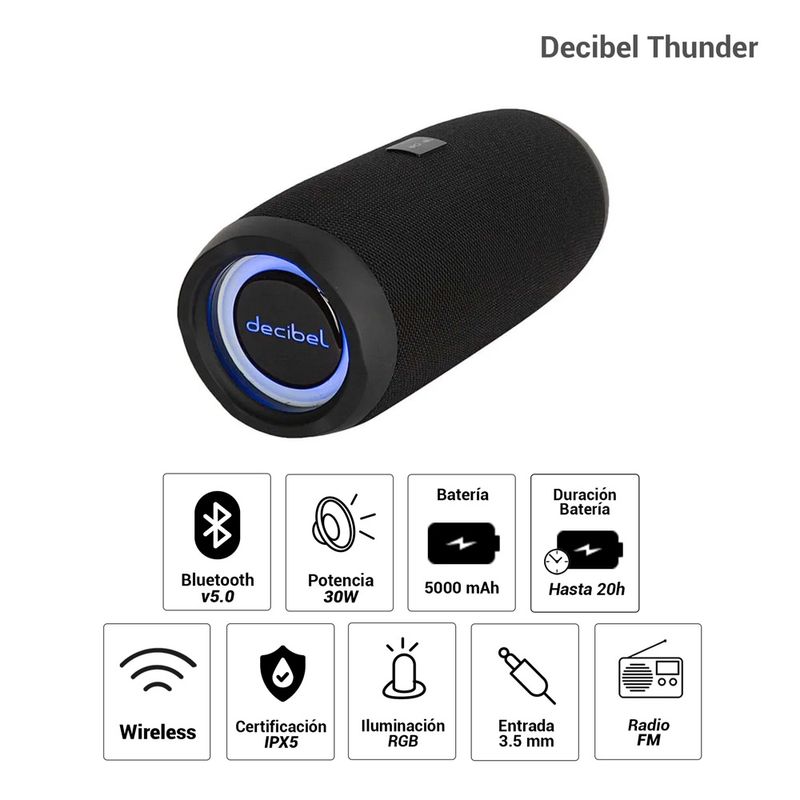 La bocina portátil Bluetooth Richards Thunder de 30W ofrece un sonido potente y envolvente, ideal para acompañar tus reuniones, entrenamientos o salidas al aire libre. Su diseño compacto y moderno en color negro combina estilo y funcionalidad.