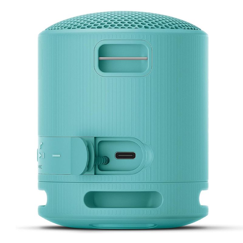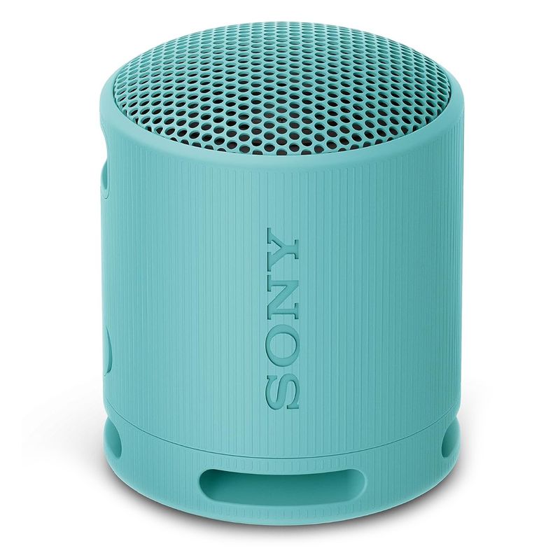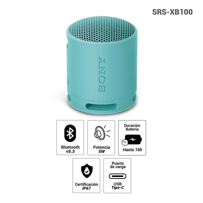 De color azul y diseño moderno, la Sony SRS-XB100 combina estilo, durabilidad y excelente rendimiento. Una bocina versátil que te acompaña con sonido de alta calidad dondequiera que estés.