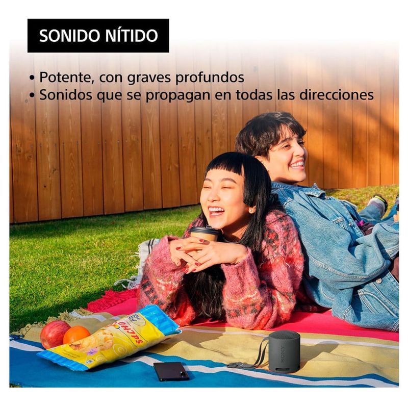 La bocina portátil Sony SRS-XB100 ofrece un rango de frecuencia de 20Hz a 20,000Hz, lo que te permite disfrutar de un sonido nítido y equilibrado. Con su tecnología Extra Bass, sentirás los graves profundos y el rendimiento claro en todas tus canciones favoritas, perfectas para fiestas o relajarte en casa.