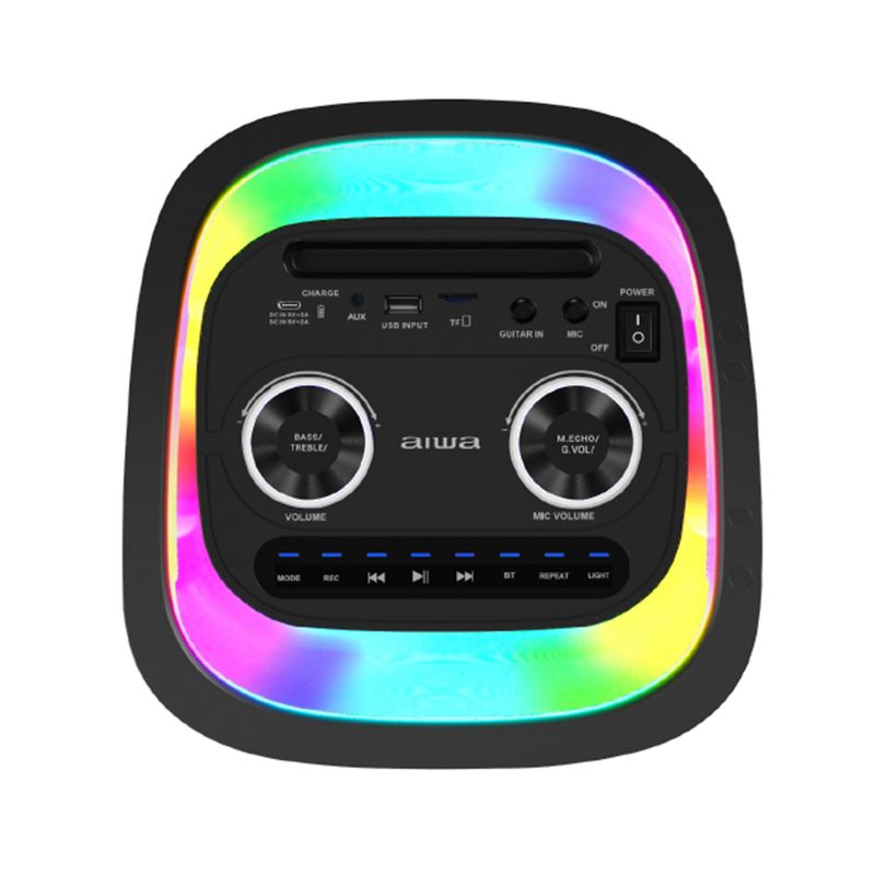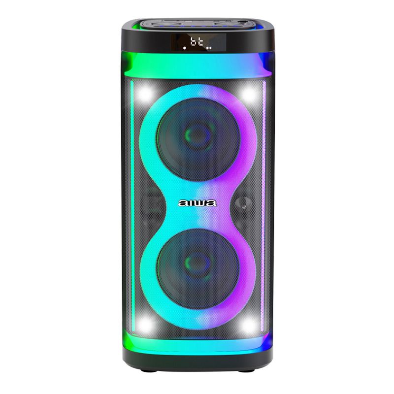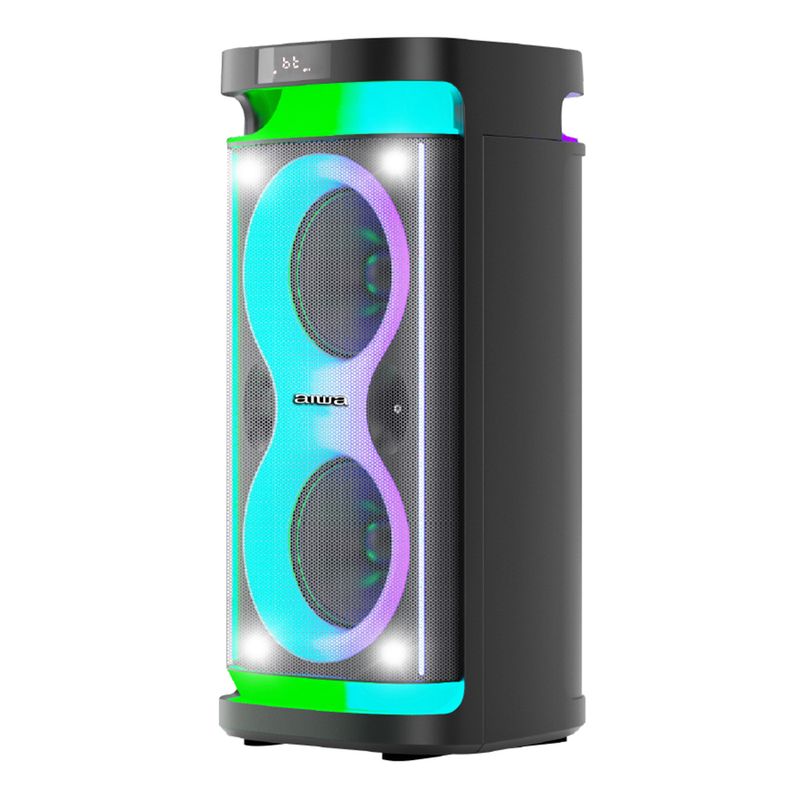 La bocina torre Aiwa AWPOH4D ofrece potencia de 600W PMPO para un sonido fuerte y claro, ideal para fiestas, reuniones o presentaciones. Su diseño en color negro y luces LED proporciona un toque moderno y atractivo.