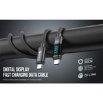 Diseño Innovador y Duradero: Con un material trenzado de alta calidad, este cable es extremadamente resistente al desgaste y a los enredos. Su color negro elegante y la pantalla LED integrada te permiten monitorear la velocidad de carga en tiempo real, ofreciendo una experiencia de uso moderna y funcional.