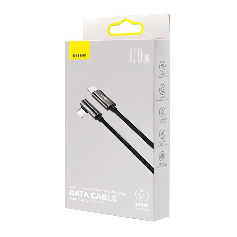 El cable Baseus Tipo C a Tipo C ofrece carga rápida PD de hasta 100W, ideal para laptops, smartphones y tablets. Su diseño tipo codo permite una conexión más cómoda y evita el desgaste del conector durante el uso diario.