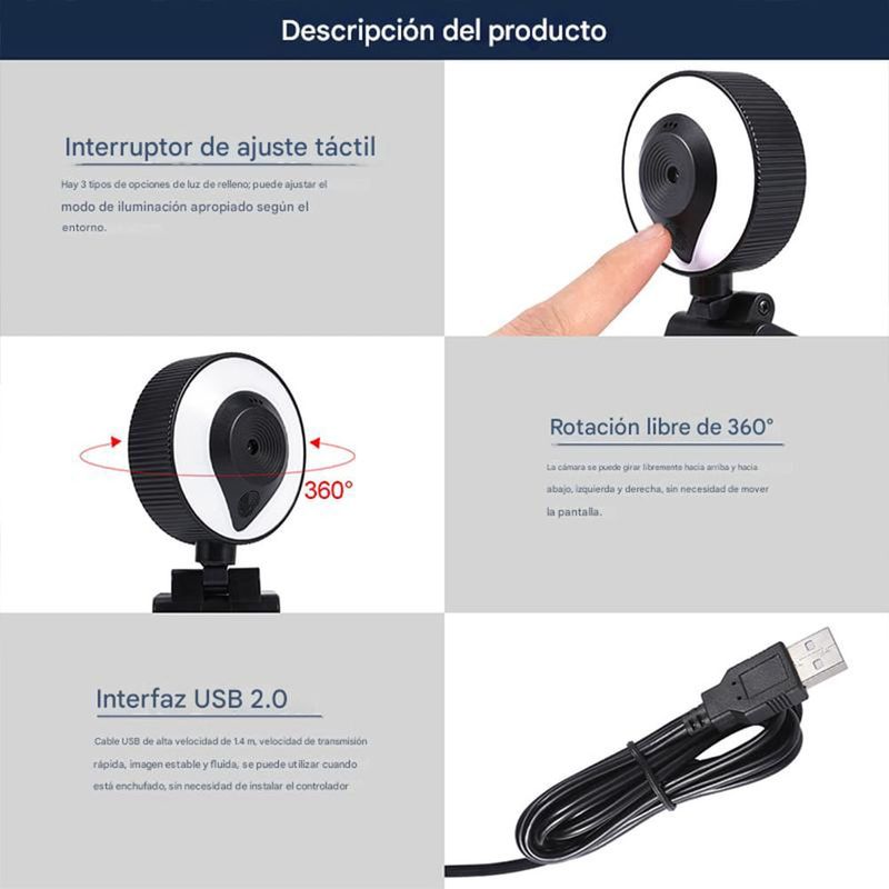 Calidad de imagen superior: Con resolución 2K y enfoque automático (AF), ofrece una imagen nítida y fluida en todo momento. Además, incorpora un sistema de iluminación LED con 3 niveles de intensidad ajustable, ideal para ambientes con poca luz. Garantiza una imagen profesional sin importar el entorno.