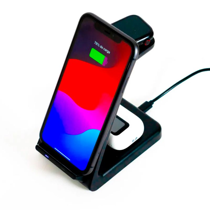 Gracias a su potencia de hasta 15W, este cargador inalámbrico ofrece una carga eficiente y estable para dispositivos compatibles, ideal para el uso cotidiano. Es perfecto para usuarios que buscan comodidad y funcionalidad en un solo accesorio, ya que centraliza la carga de los principales dispositivos Apple en una sola base. Su formato facilita el uso diario y contribuye a una experiencia más práctica y organizada.