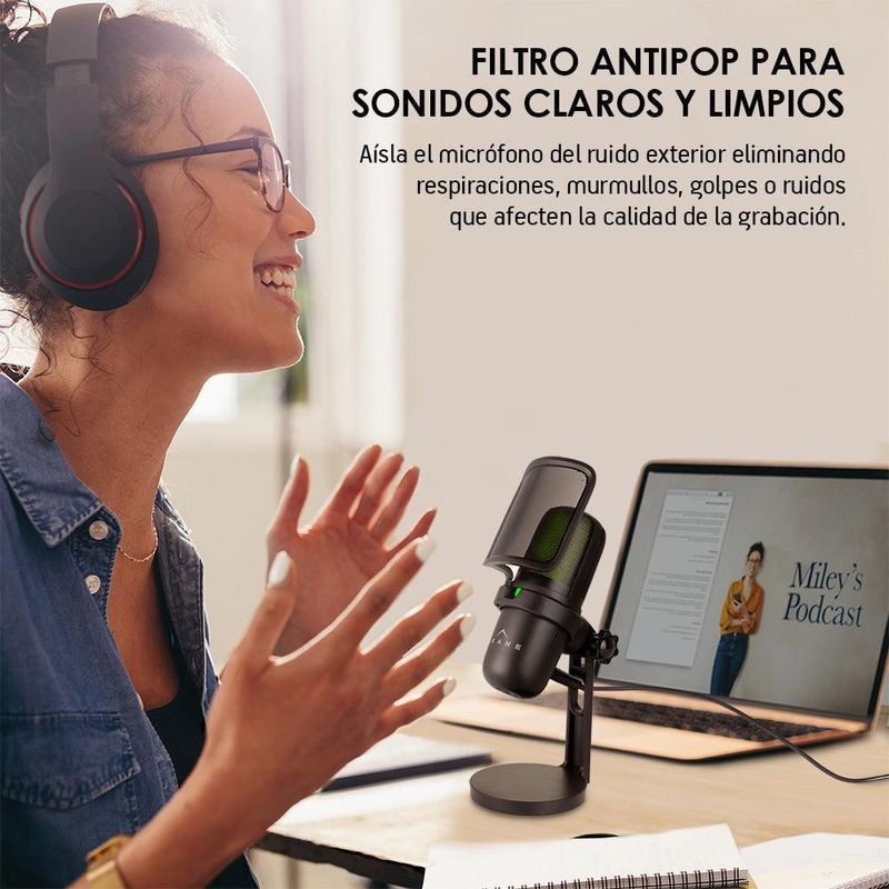 Cuenta con filtro antipop y base ajustable para un uso cómodo y estable. Su conexión alámbrica plug and play facilita la instalación sin necesidad de software adicional, siendo compatible con computadoras, laptops y consolas.