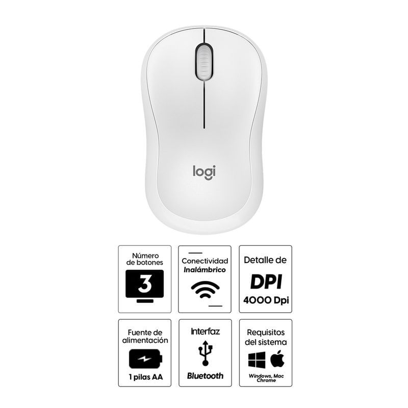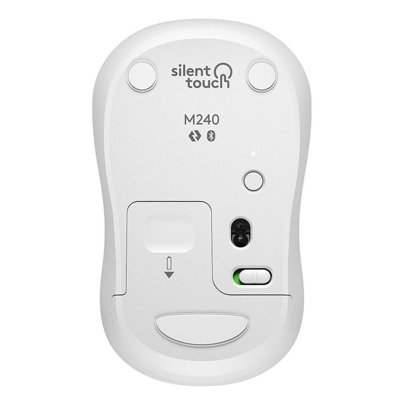 En color blanco, el Logitech M240 Silent destaca por su elegancia, ergonomía y eficiencia energética. Es la elección perfecta para quienes buscan un mouse inalámbrico confiable, silencioso y con la calidad distintiva de Logitech.
