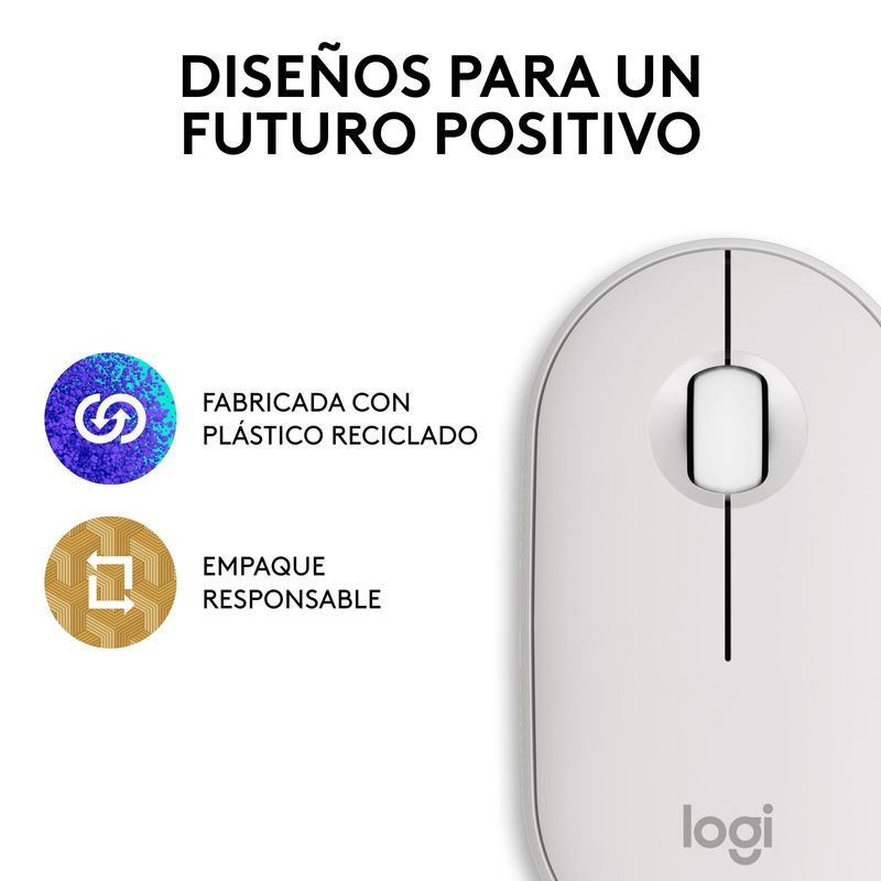 En color blanco, el Logitech Pebble 2 M350S combina diseño moderno, ergonomía y practicidad. Es perfecto para quienes desean un mouse inalámbrico elegante, funcional y confiable con la calidad de Logitech.