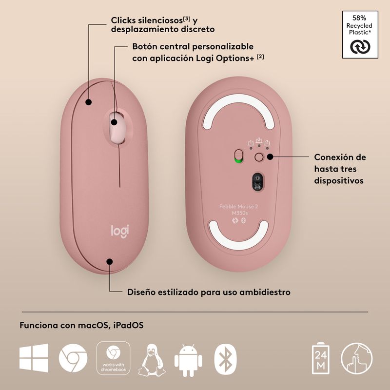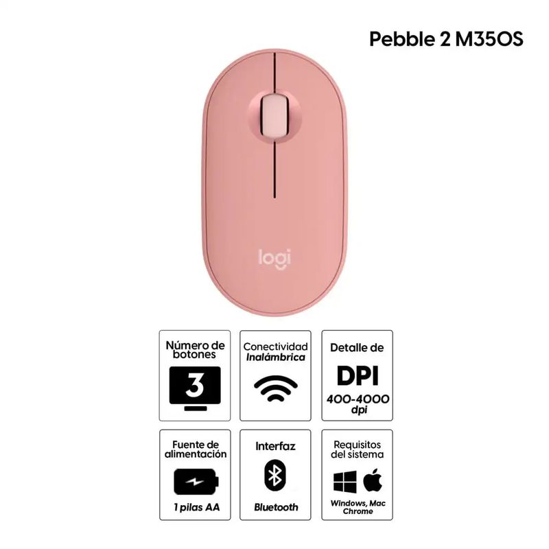 El mouse inalámbrico Logitech Pebble 2 M350S ofrece un diseño moderno, compacto y silencioso ideal para uso diario. Su conectividad bluetooth permite un emparejamiento rápido y estable con laptops, tablets o PCs sin necesidad de receptor adicional.
