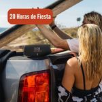 Cuenta con certificación IP67, lo que la hace resistente al agua y al polvo, ideal para exteriores, playa o piscina. Su batería de 7500 mAh ofrece hasta 20 horas de reproducción continua, e incluye función TWS para enlazar otra bocina JBL y disfrutar sonido estéreo.