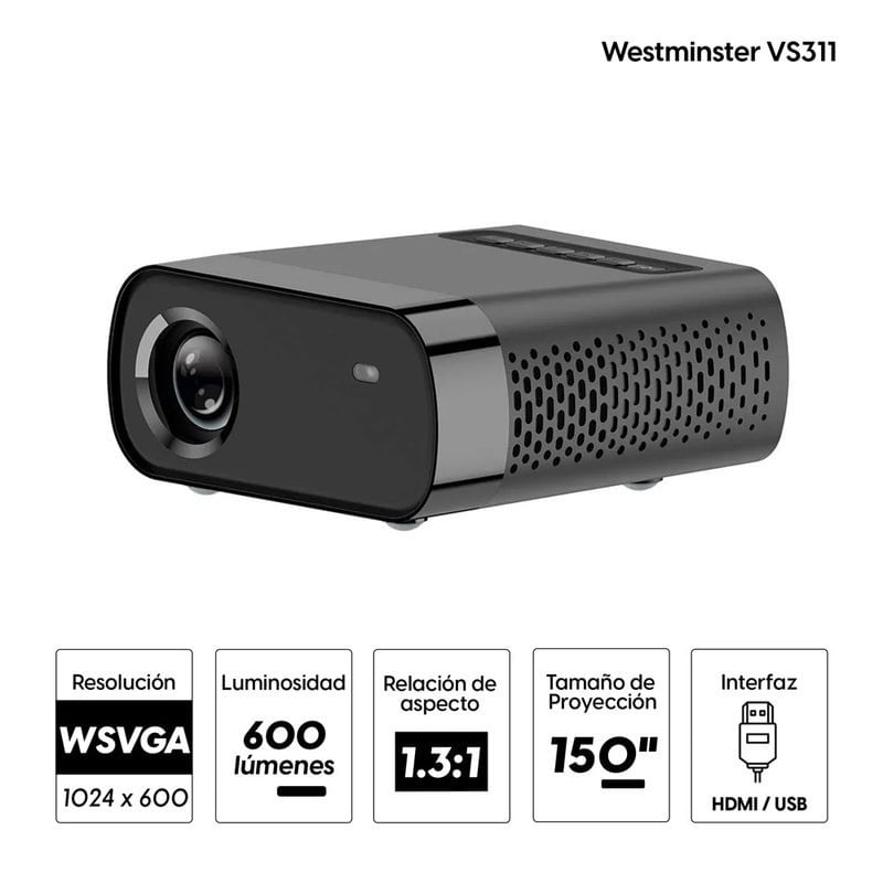 El proyector Westminster VS311 ofrece una solución de entretenimiento compacta y eficaz, con una luminosidad de 600 lúmenes que permite proyecciones claras y amplias. Su tamaño portátil lo hace ideal para usar en diferentes ambientes, ya sea en la sala, oficina o habitación.