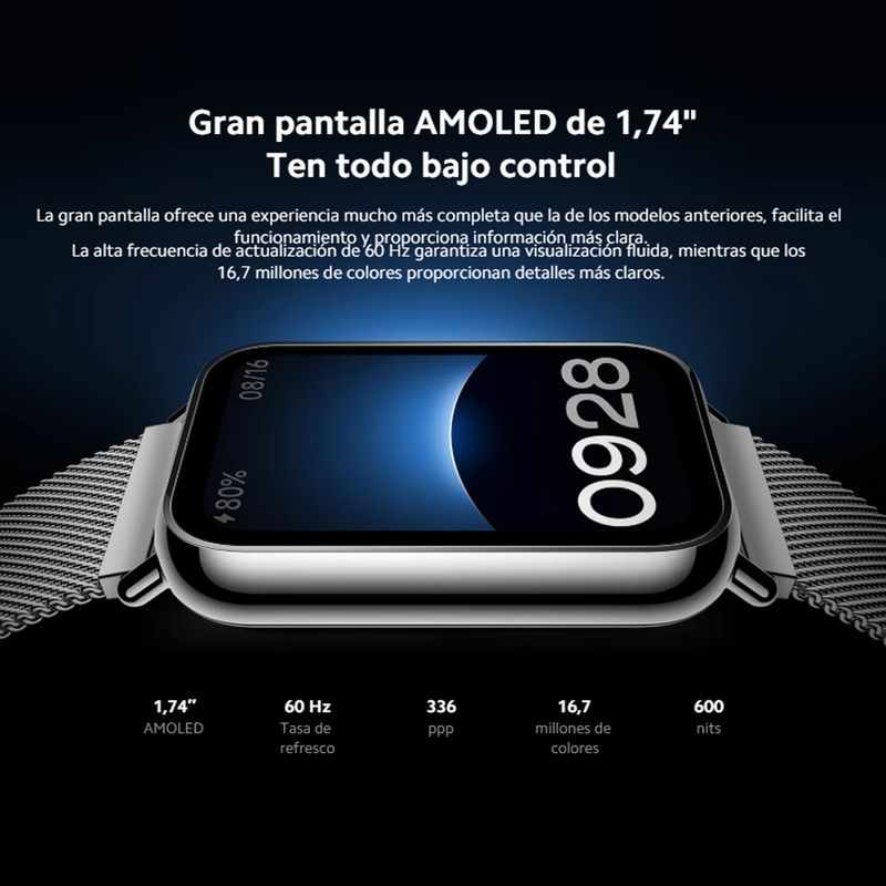 La Xiaomi Mi Smart Band 8 Pro combina estilo y rendimiento en una pulsera inteligente con pantalla AMOLED de 1.74 pulgadas, ideal para visualizar métricas con claridad y estilo. Diseñada para quienes buscan comodidad y funcionalidad en un solo dispositivo.
