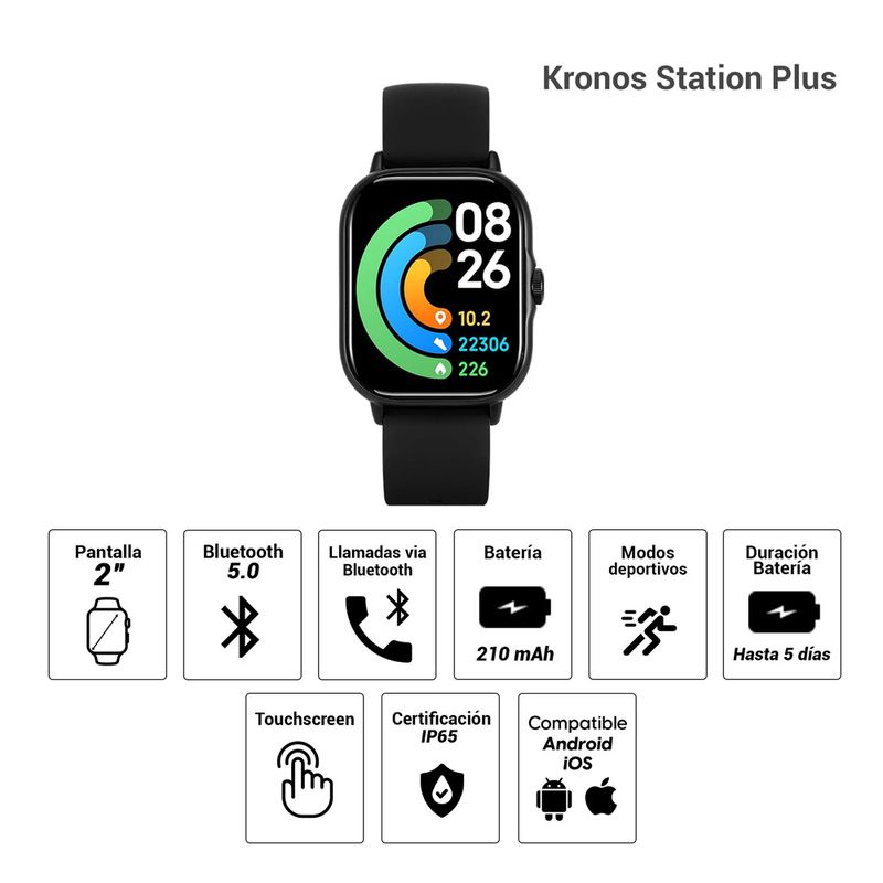Confiable, versátil y práctico, el Kronos Station Plus es la opción perfecta para quienes buscan un smartwatch funcional y elegante con autonomía y durabilidad en un solo dispositivo.
