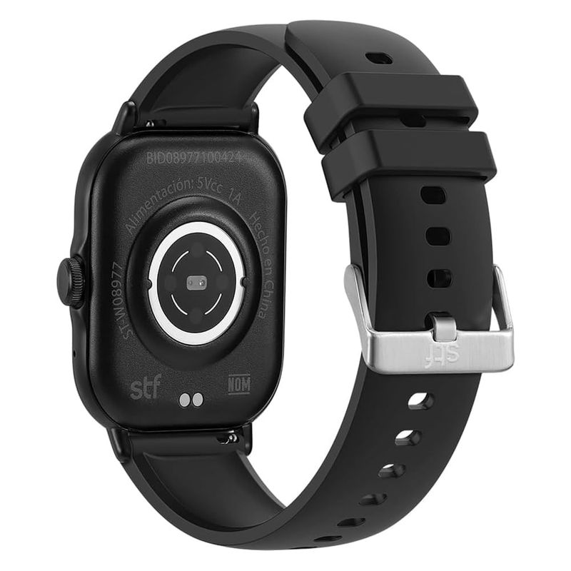El smartwatch STF Kronos Station Plus en color negro combina diseño moderno con funciones inteligentes, ideal para acompañar tu estilo de vida activo y conectado.