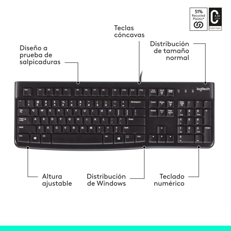 Cuenta con conexión USB para una instalación rápida y compatible con la mayoría de laptops y computadoras. Incorpora teclado numérico completo que facilita la digitación en hojas de cálculo, formularios y trabajos administrativos.