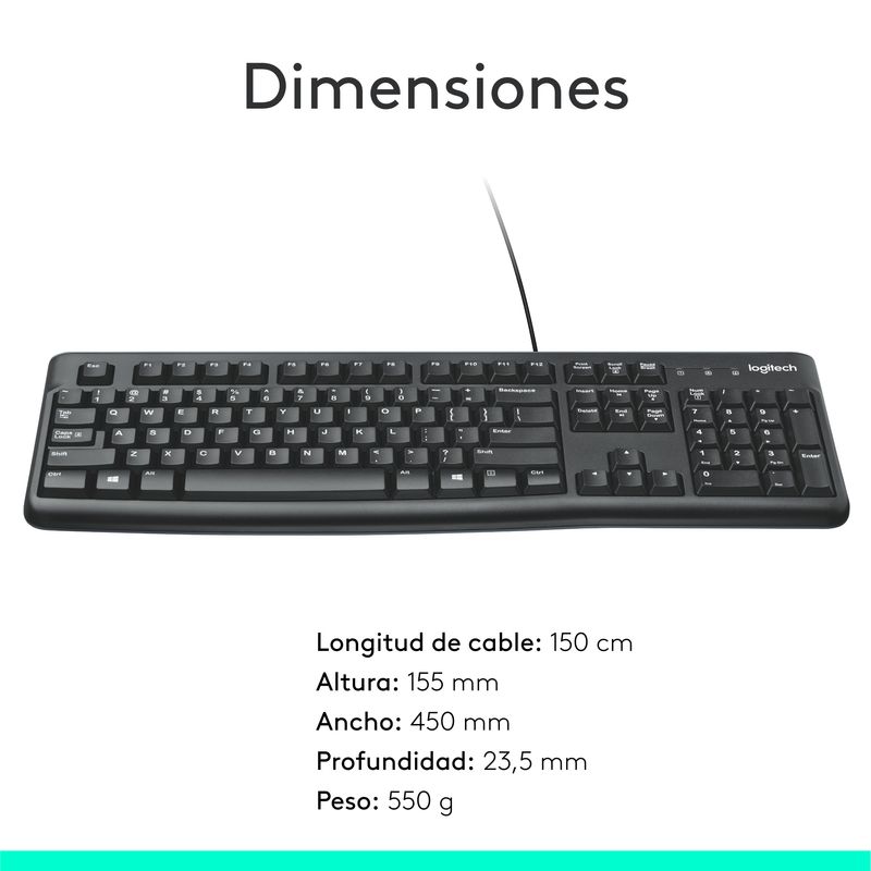 El teclado Logitech K120 alámbrico ofrece comodidad y rendimiento estable en el uso diario gracias a su tecnología de membrana, ideal para trabajo, estudio o tareas de oficina. Su diseño en color negro brinda un estilo profesional y discreto.